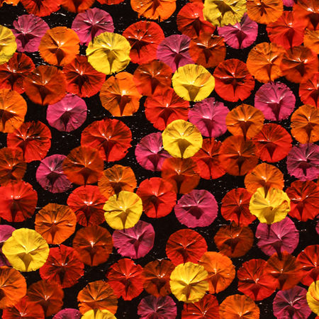 In these dot paintings, I attempt to depict upside-down flowers, with each meticulous dot serving as a symbolic representation of this floral motif. Specifically, I draw inspiration from the elegant petunia flower, utilizing its graceful form as a central theme in my artwork. Through the intricate arrangement of dots, I seek to capture the essence of the petunia's delicate beauty and transformative journey. As viewers engage with my paintings, they are invited to contemplate the profound symbolism of the upside-down flower, a visual metaphor for the cyclical nature of life and the inevitable passage of time.